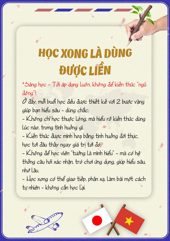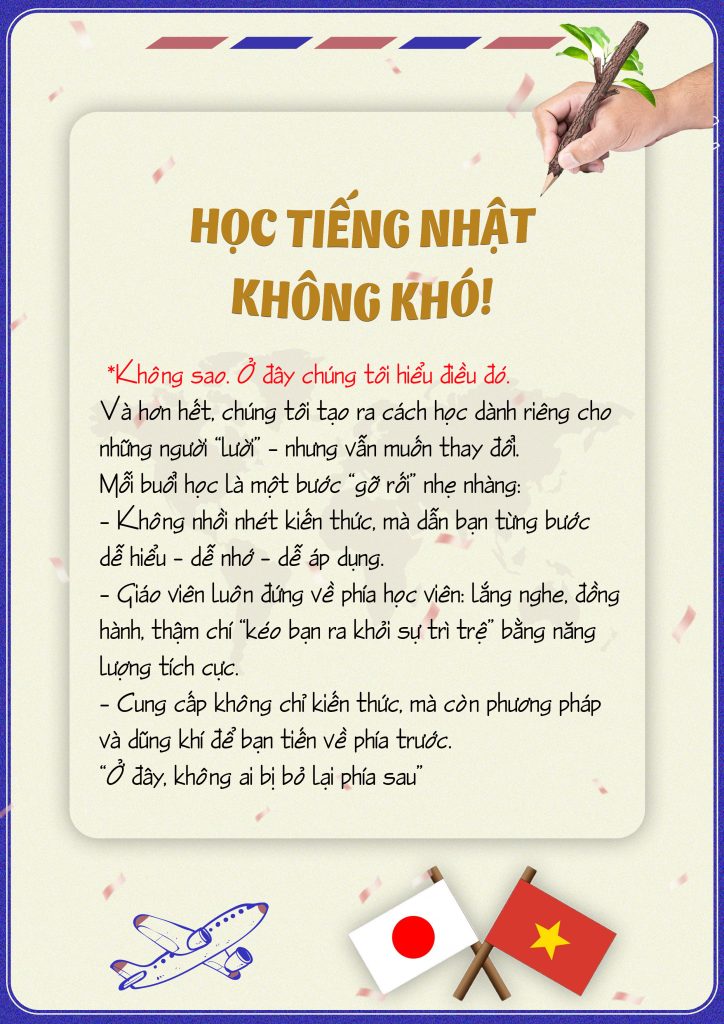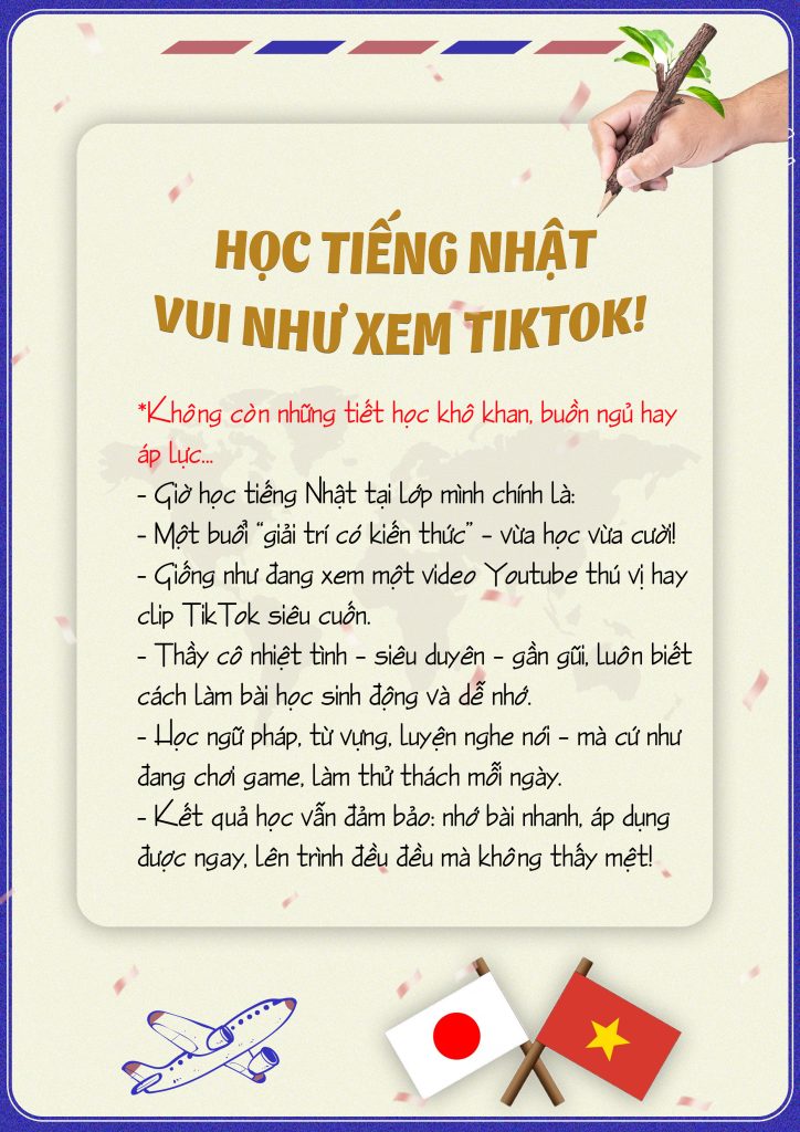 “Lớp học của thầy luôn đầy năng lượng, thầy rất nhiệt tình sửa phát âm và giải thích ngữ pháp cực kỳ kỹ. Học xong mình tự tin giao tiếp với người Nhật trong công ty.”